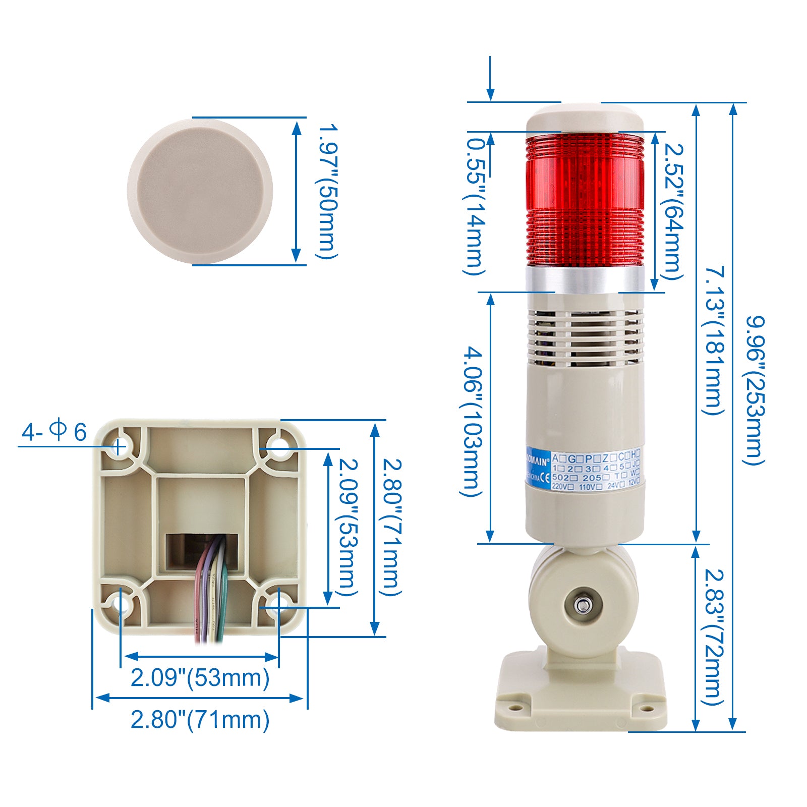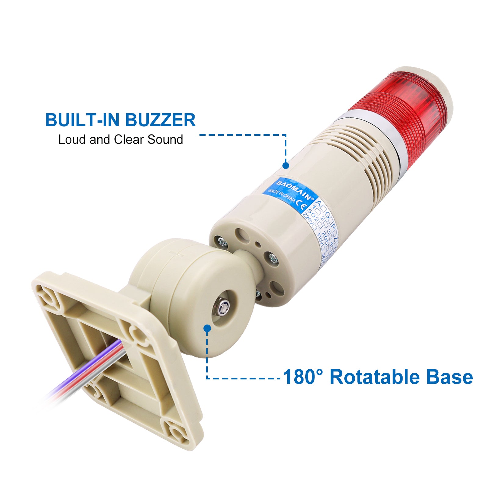 Baomain LED Signal Tower Stack Lights with Buzzer 12V/24V/110V/220V Industrial Continauous Warning Light with Rotatable Base Red/Green/Blue/Yellow/White Column Tower Lamp LXY-502-TJ