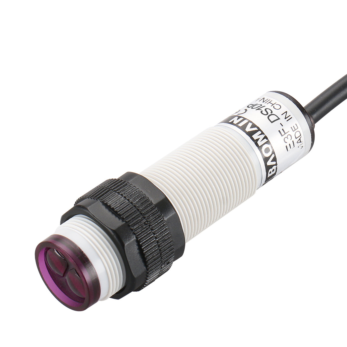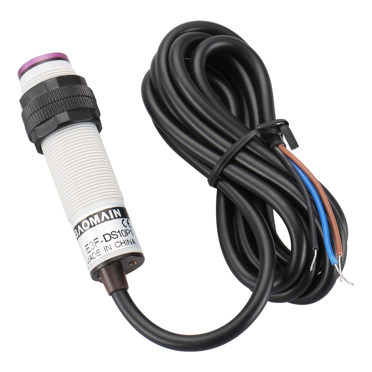Baomain M18 Photoelectric Sensor Diffuse Reflection Sensor Switch E3F-DS10P1 PNP NO 200mA Sensing Distance 10cm 3 Wires