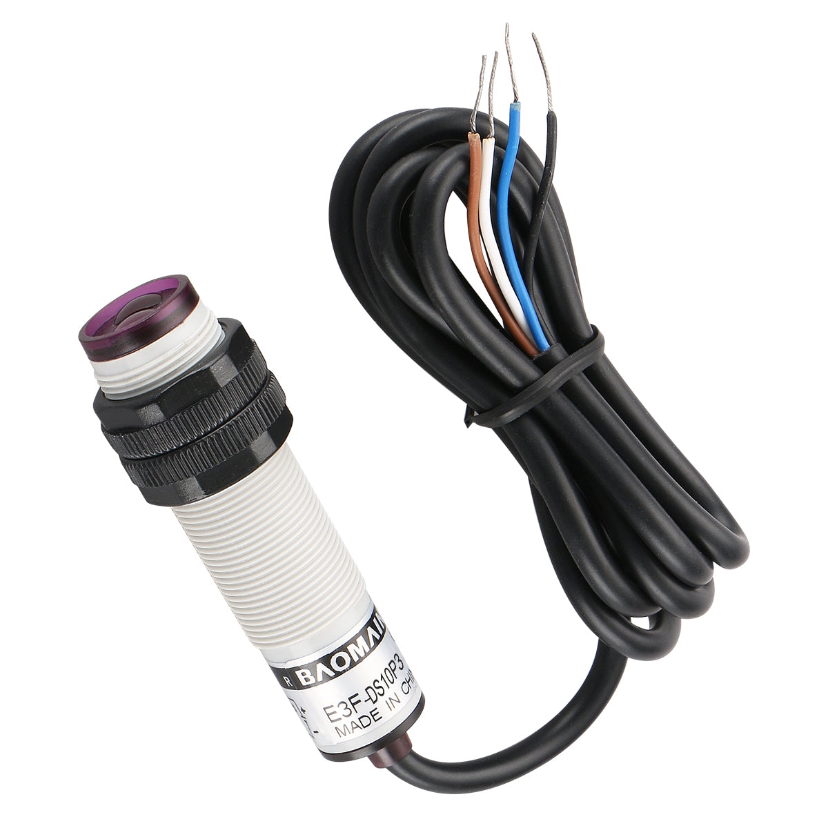 Baomain M18 Photoelectric Sensor Diffuse Reflection Sensor Switch E3F-DS10P3 PNP NO+NC 200mA Sensing Distance 10cm 4 Wires