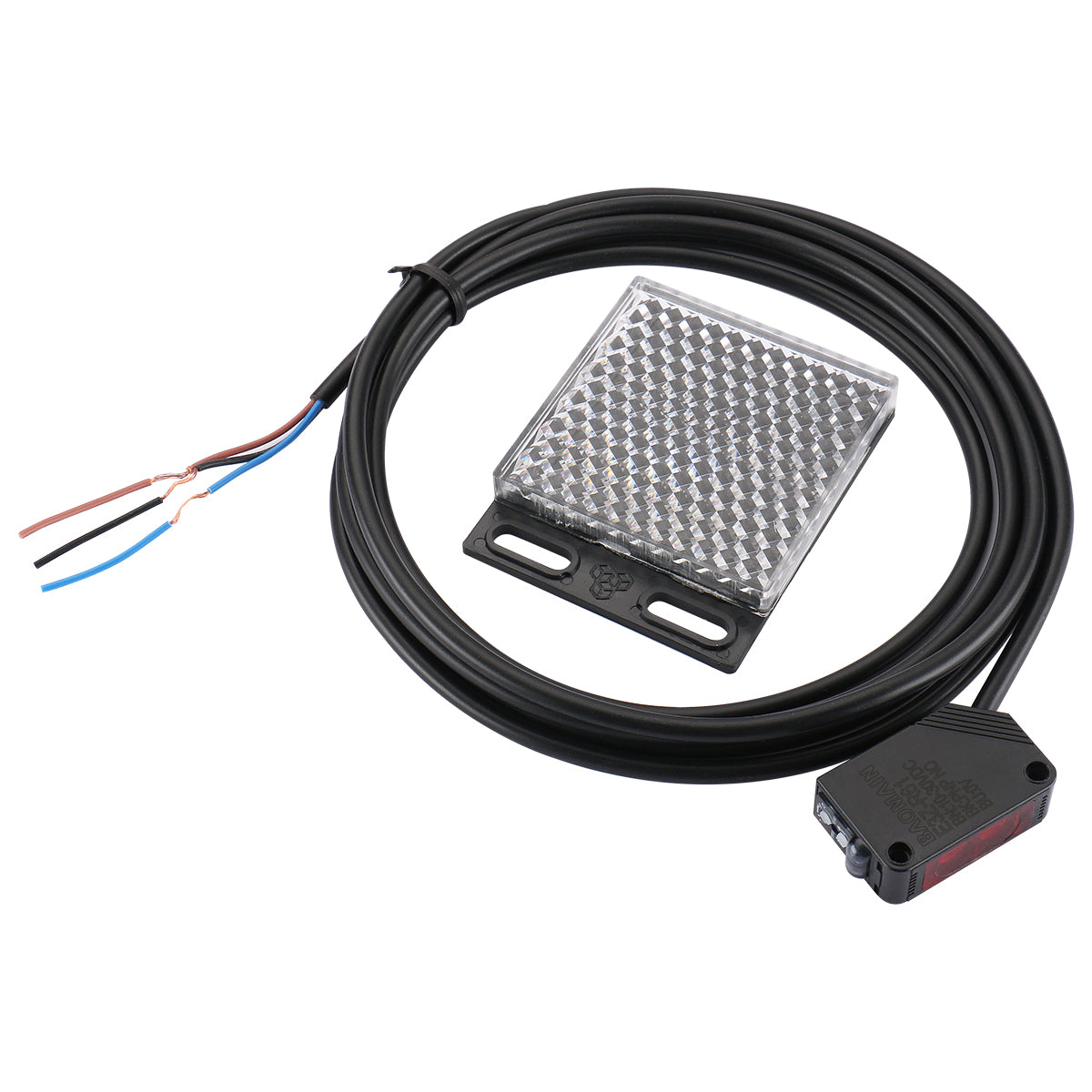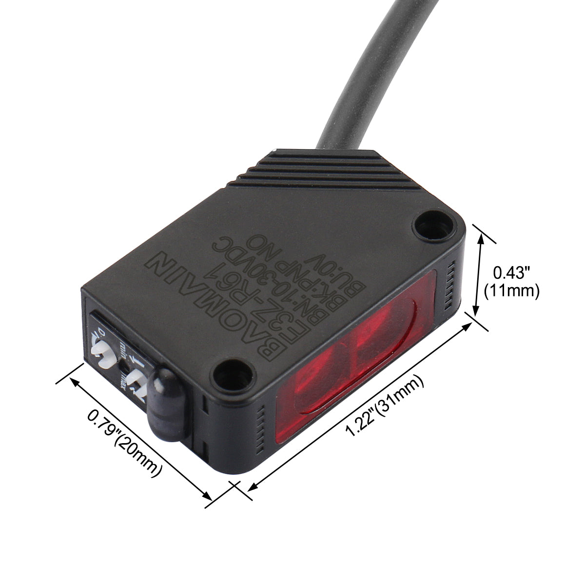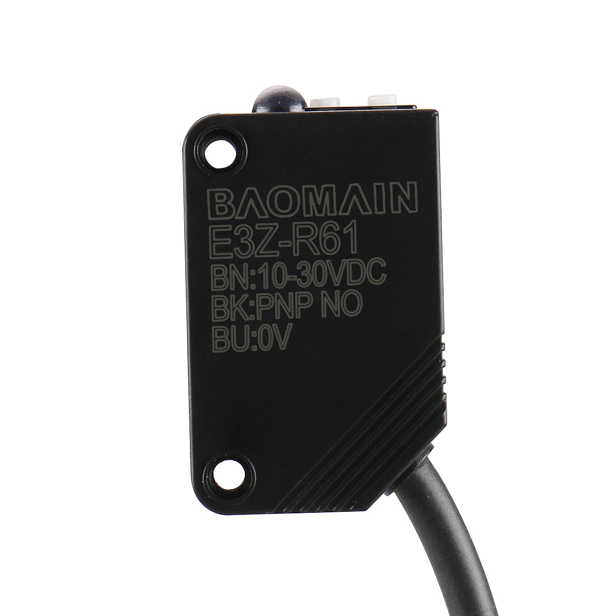 Baomain 2M Compact Photoelectric Sensor E3Z-R61,Retro-Reflective Type with M.S.R. Function, NPN (NO Or NC Switchable) Sensing Distance 20-350cm with Reflector Panel