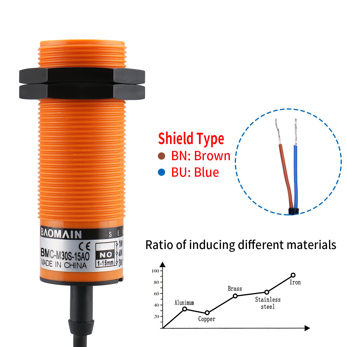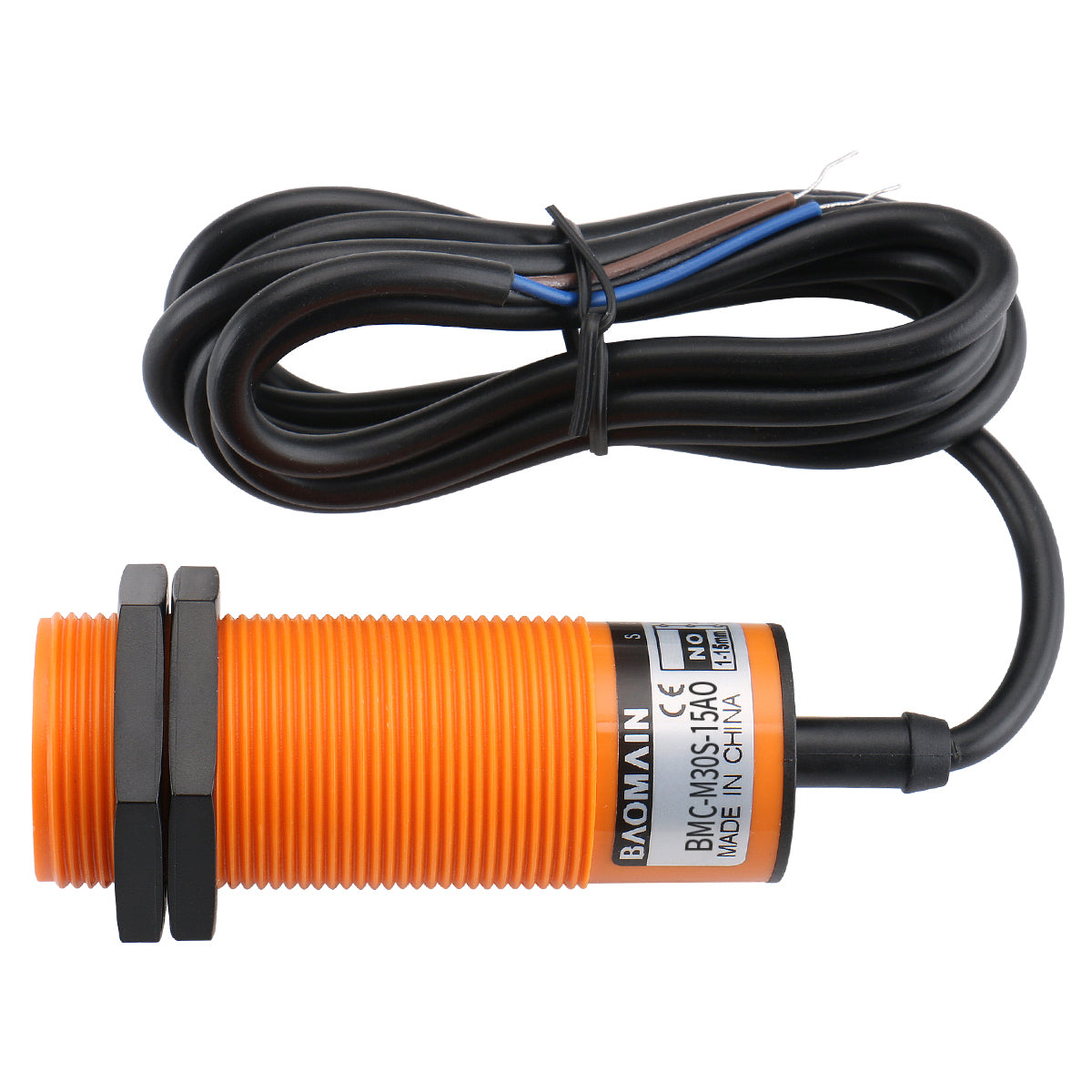 Baomain Capacitive Proximity Sensor, Cylindrical M30 Plastic, Sn 15 mm, 2-wire, 220V, NO Contacts, Cable 2 mm BMC-M30S-15AO