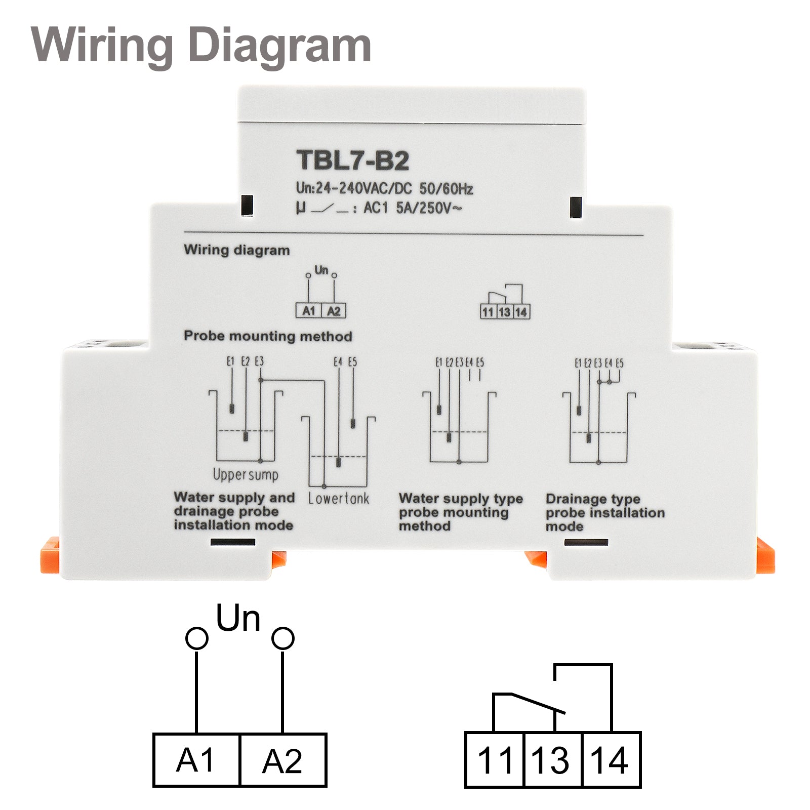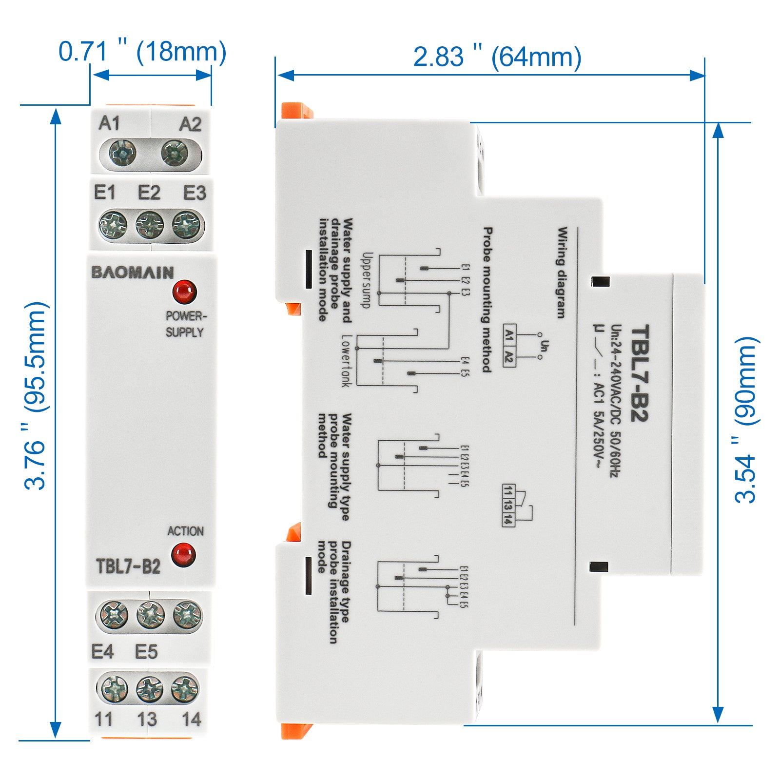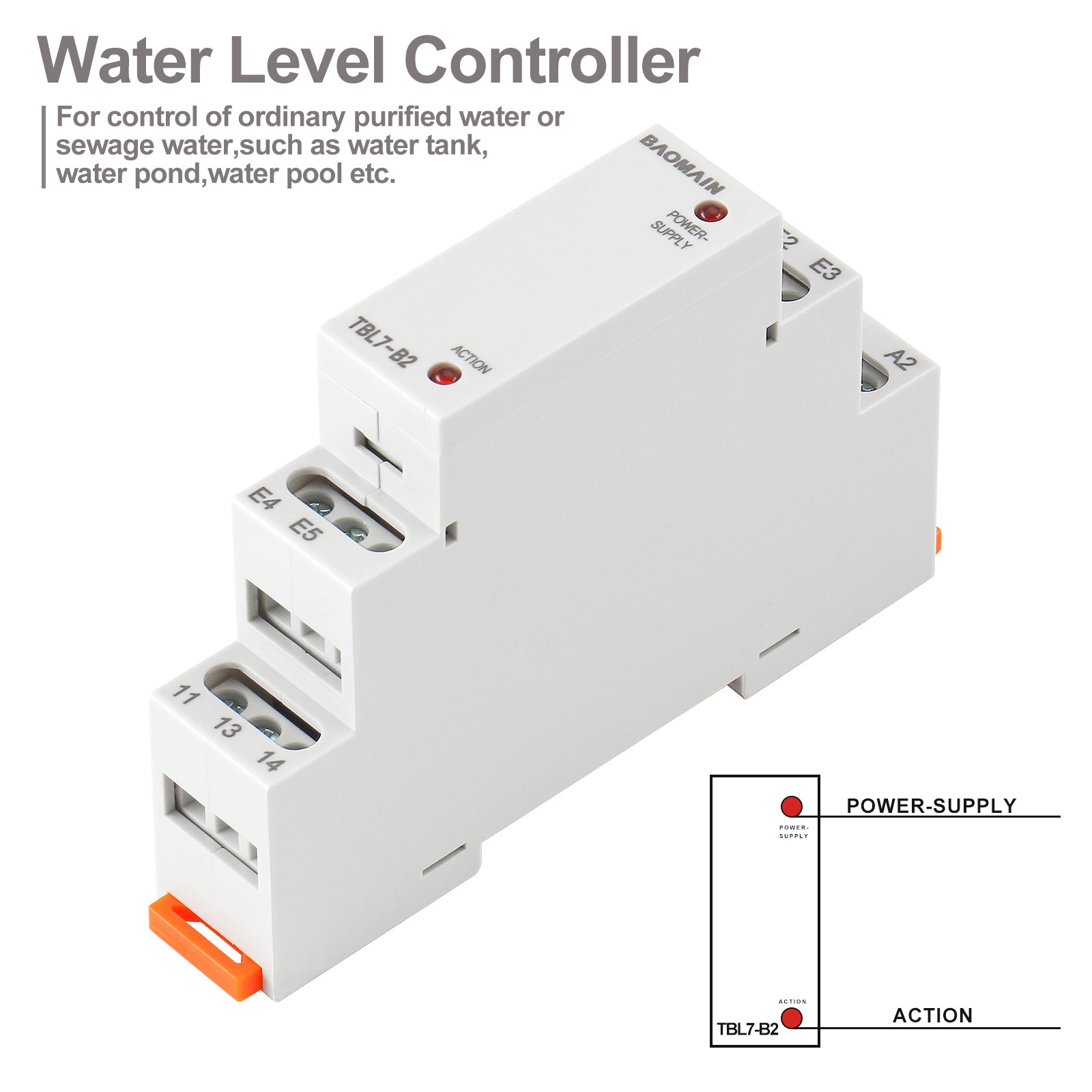 Baomain Liquid Timer Control Relay, 5A AC/DC24-240V 2-SPDT, DIN Rail Mounting Three Electrode Water Level Controller TBL7-B2