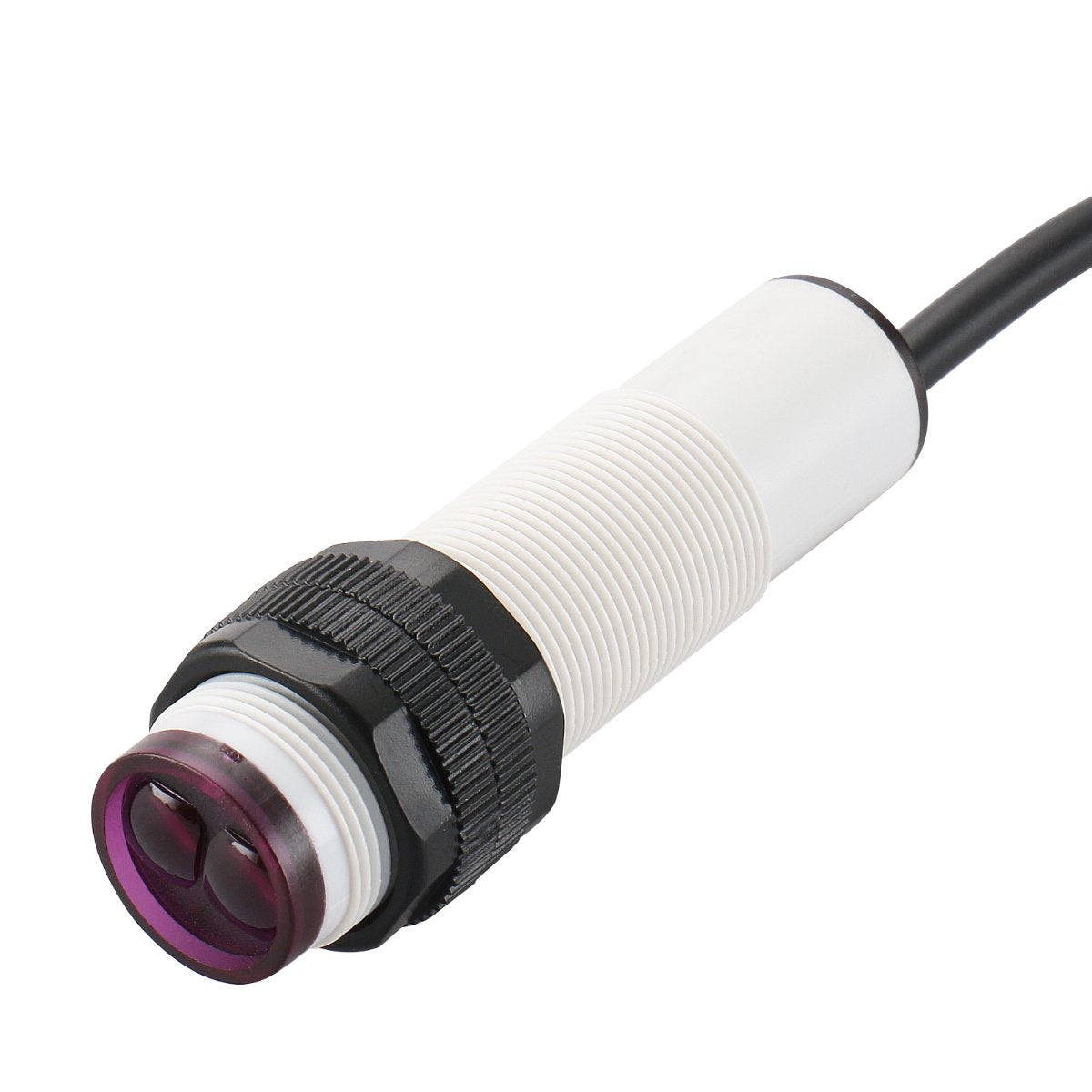 Baomain M18 Photoelectric Sensor Adjustable Diffuse Reflection Sensor Switch E3F-DS100C4 NPN NO DC 10-30V 200mA Sensing Distance 10-100cm 3 Wires