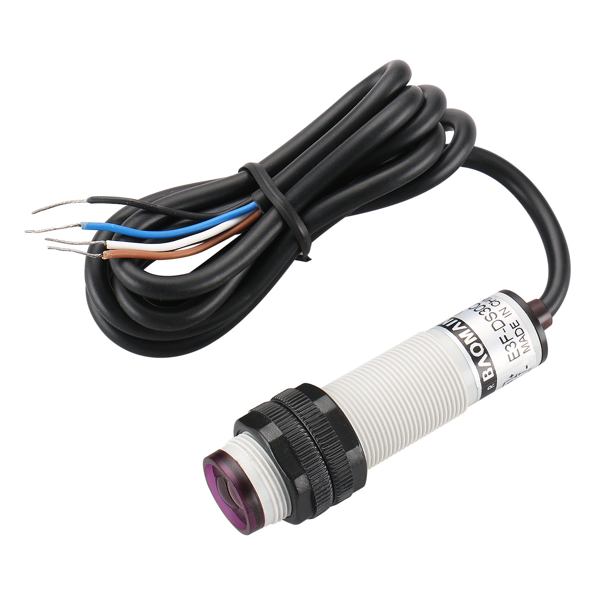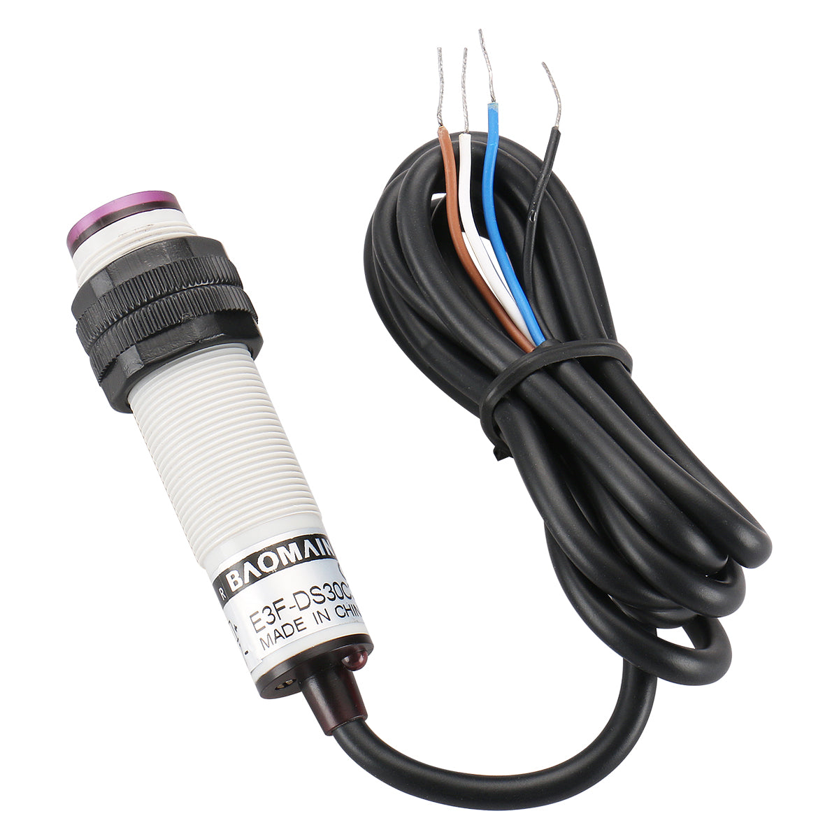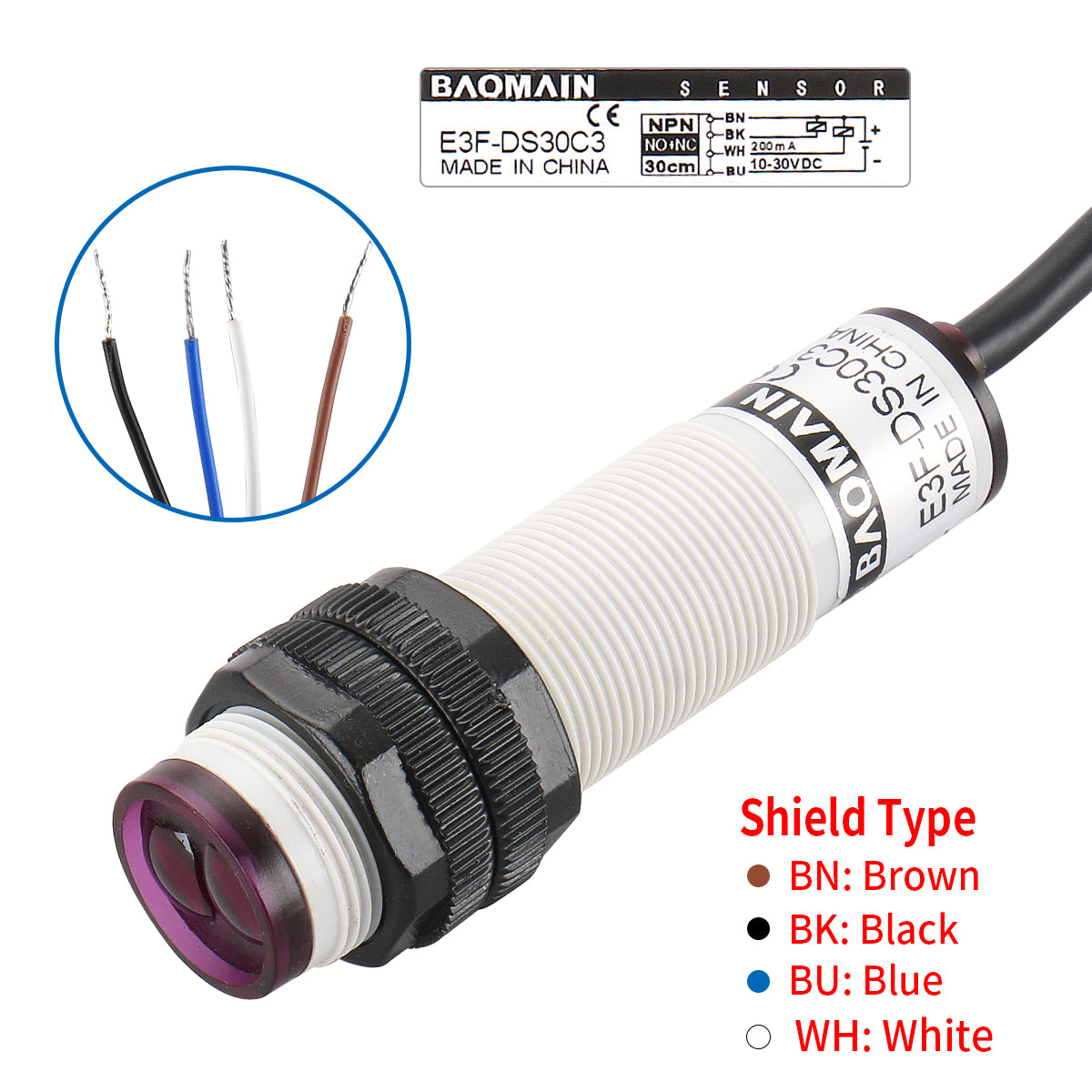 Baomain M18 Photoelectric Sensor Adjustable Diffuse Reflection Sensor Switch E3F-DS30C3 NPN NO+NC 200mA Sensing Distance 10-30cm 4 Wires