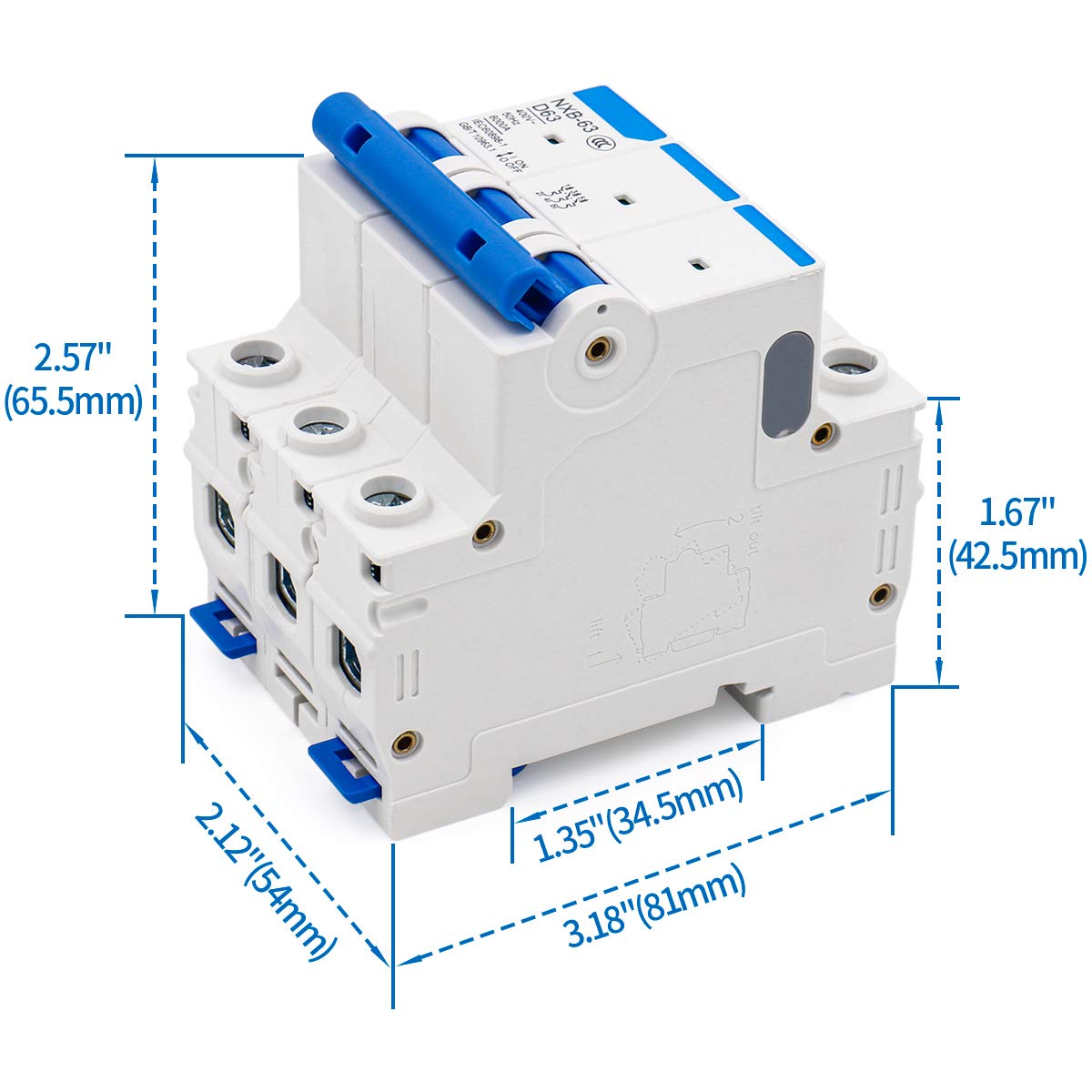 Baomain Mini Circuit Breaker NXB-63 D63 AC 400V 63Amp 3 Pole DIN Rail Mounting Work for Motor Protection and Air Compressor