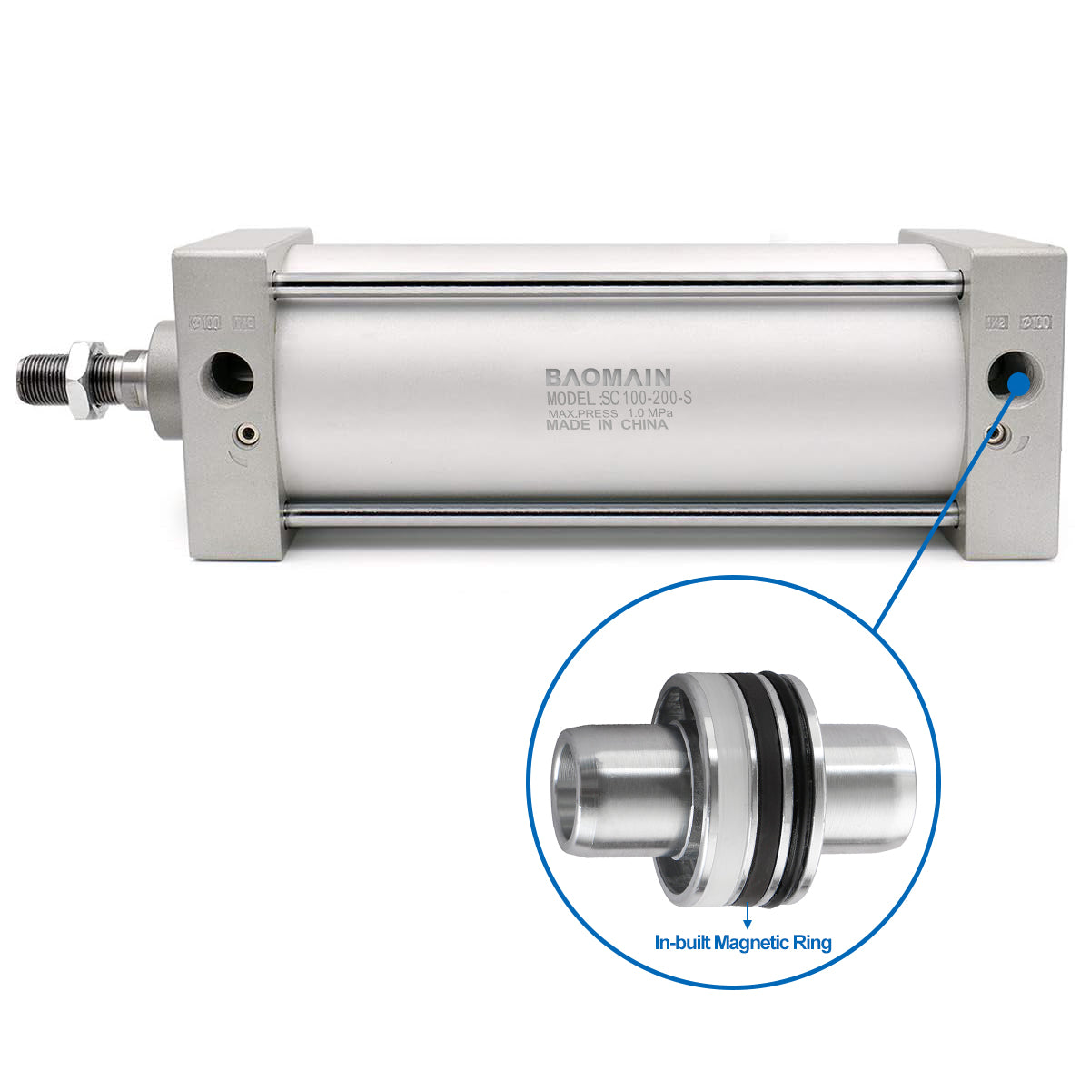 Pneumatic Air Cylinder with magnet SC 100-200-S, Bore: 4"-100mm, Stroke: 8''- 200mm, PT1/2 Port Size, Screwed Piston Rod Dual Action