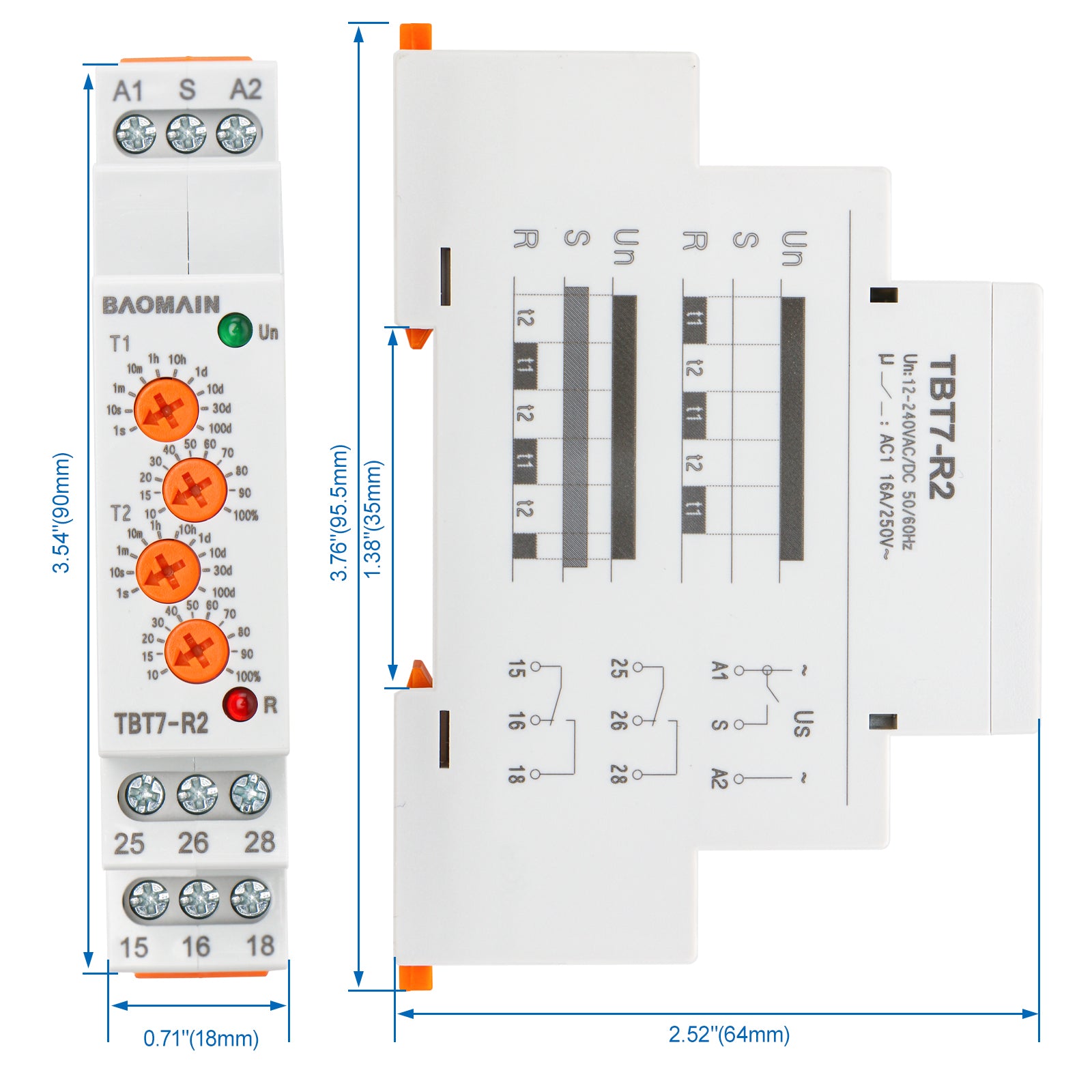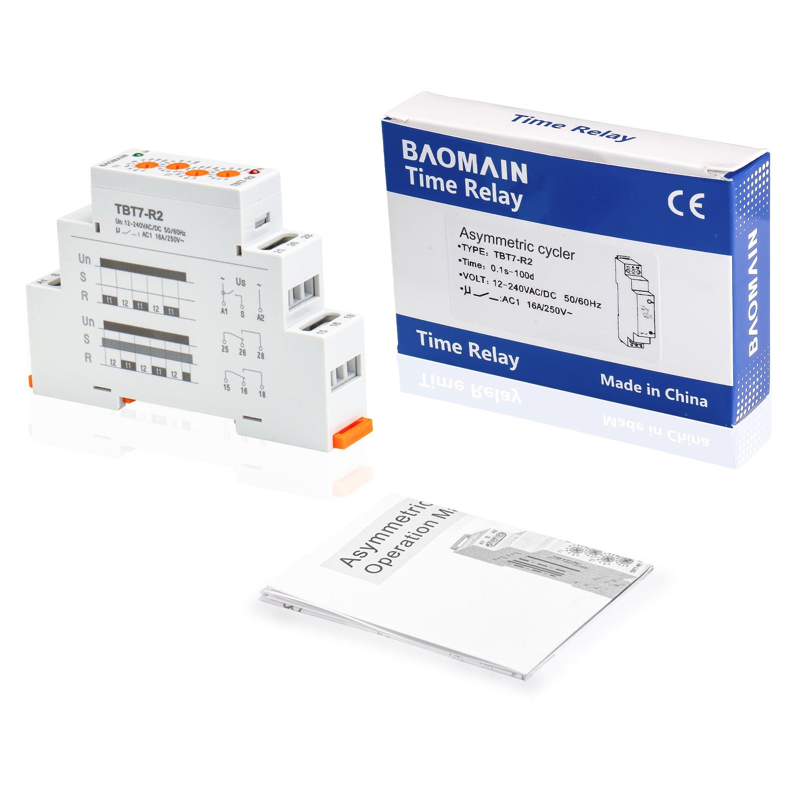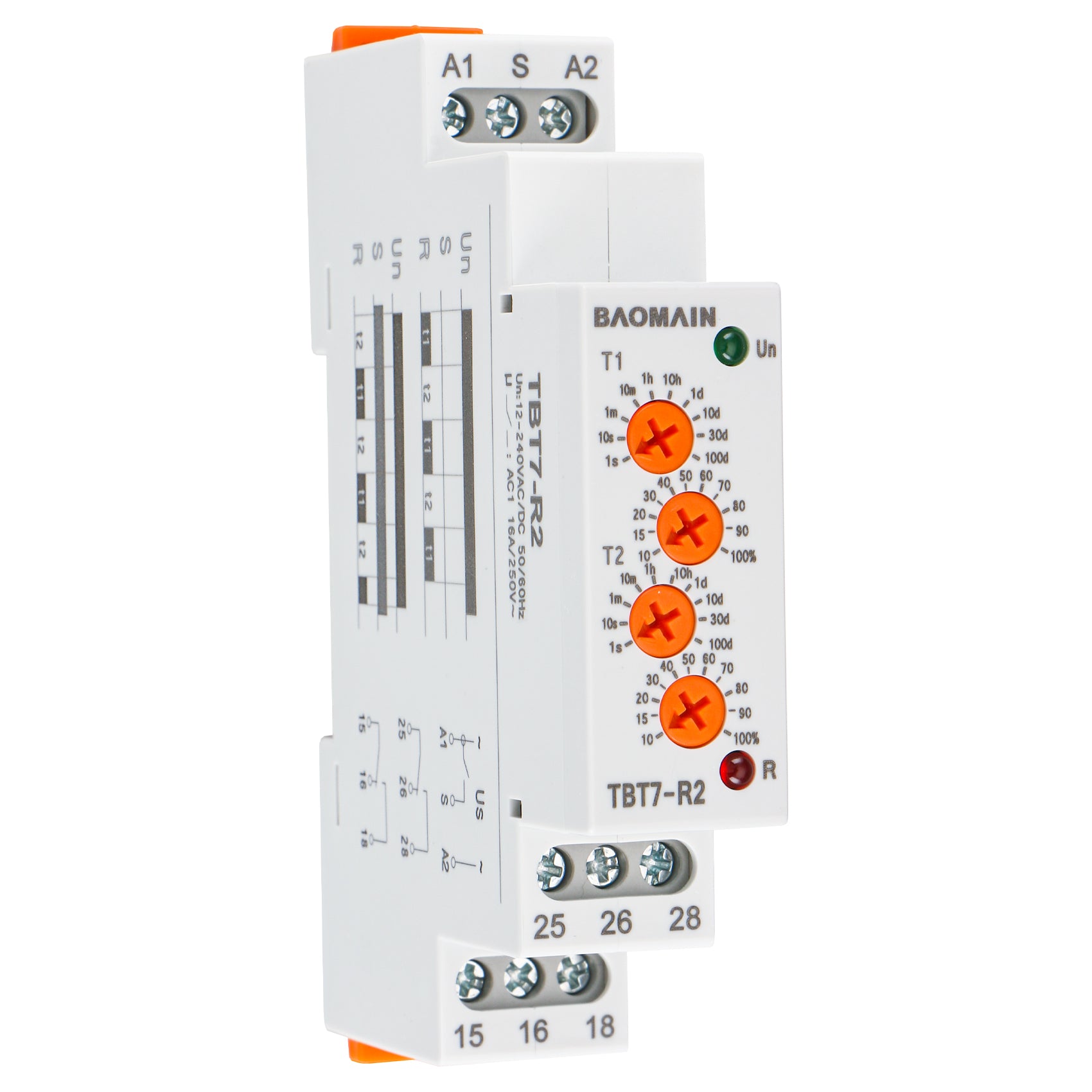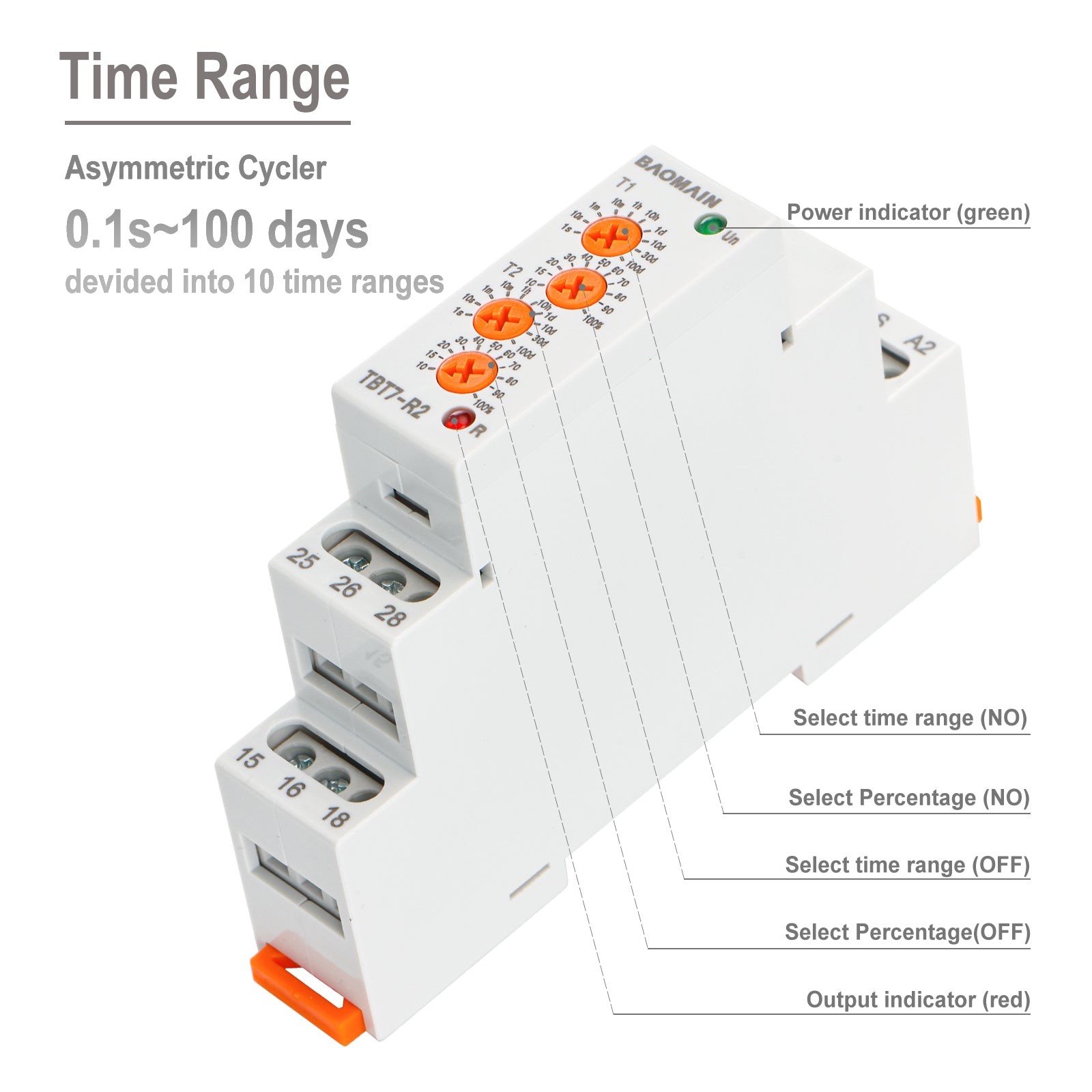 Baomain Asymmetric Cycler Time Relay, 16A 2-SPDT, Repeat Cycle Time Relay for Room Ventilation,Cyclic Dehumidification TBT7-R2