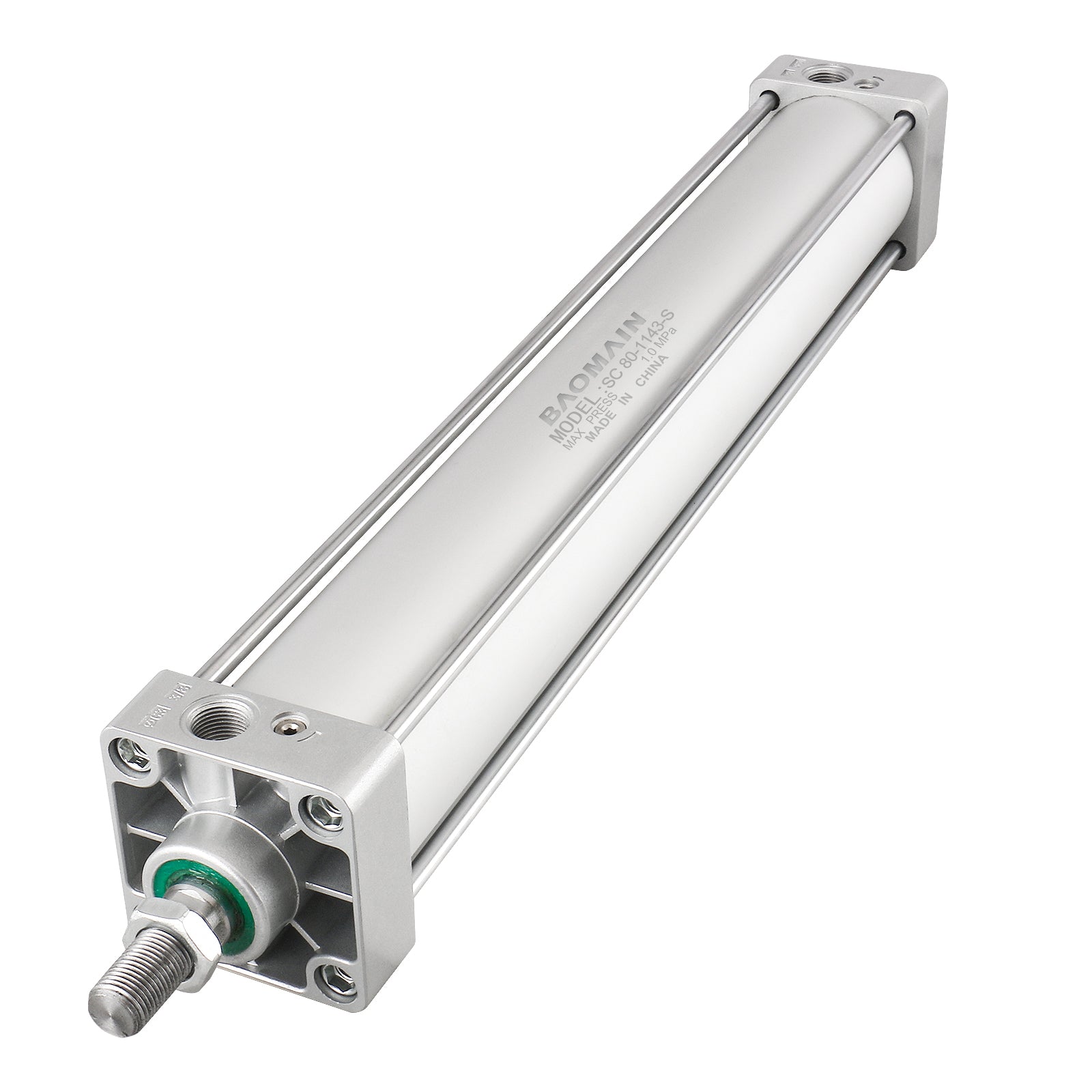 Baomain Pneumatic Air Cylinder with magnet, SC 80 x 1143-S Customized Pneumatic Air Cylinder, PT 3/8,Bore 3.15 inch(80 mm),Stroke 45 inch(1143mm), Screwed Piston Rod Dual Action 1 Mpa,for Manufacturing with 2PCS Fittings