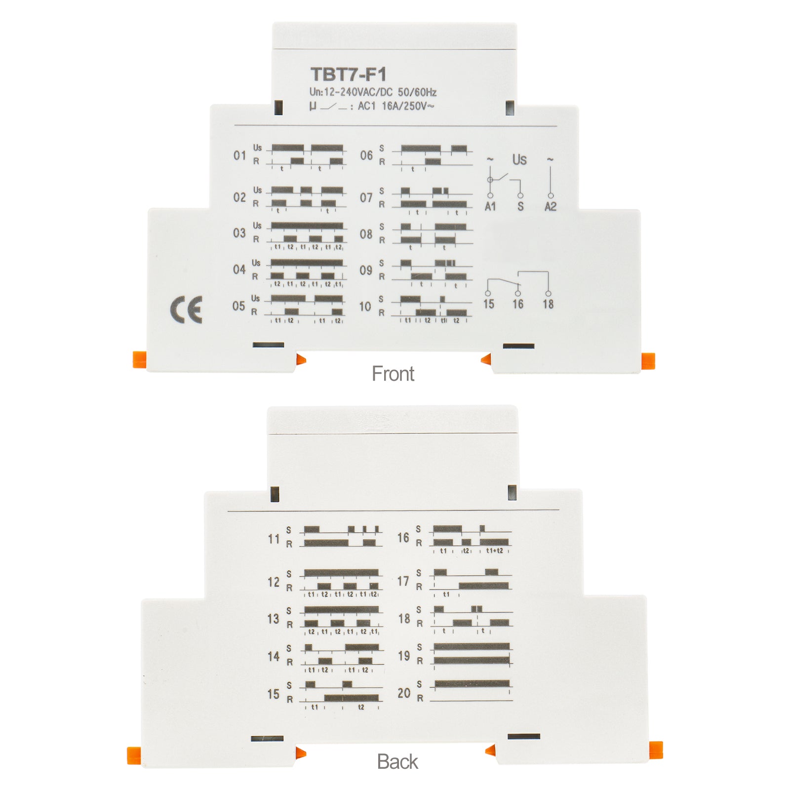 Baomain Digital Multi-Function Time Relay,SPDT 16A 20-Delay Modes 0.1s~99d, DIN Rail Mounting Timer Relay TBT7-F1