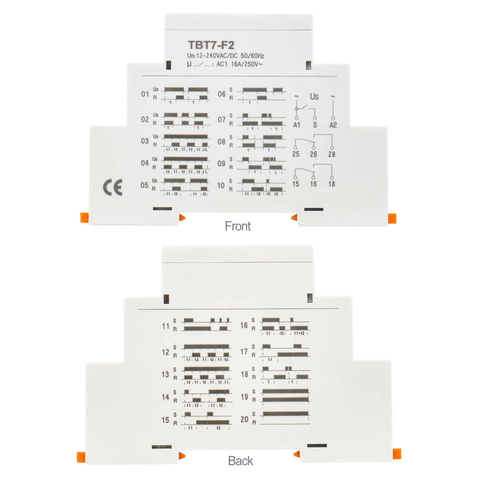Baomain Digital Multi-Function Time Relay, 2-SPDT 16A 20-Delay Modes 0.1s~99d, DIN Rail Mounting Timer Relay TBT7-F2